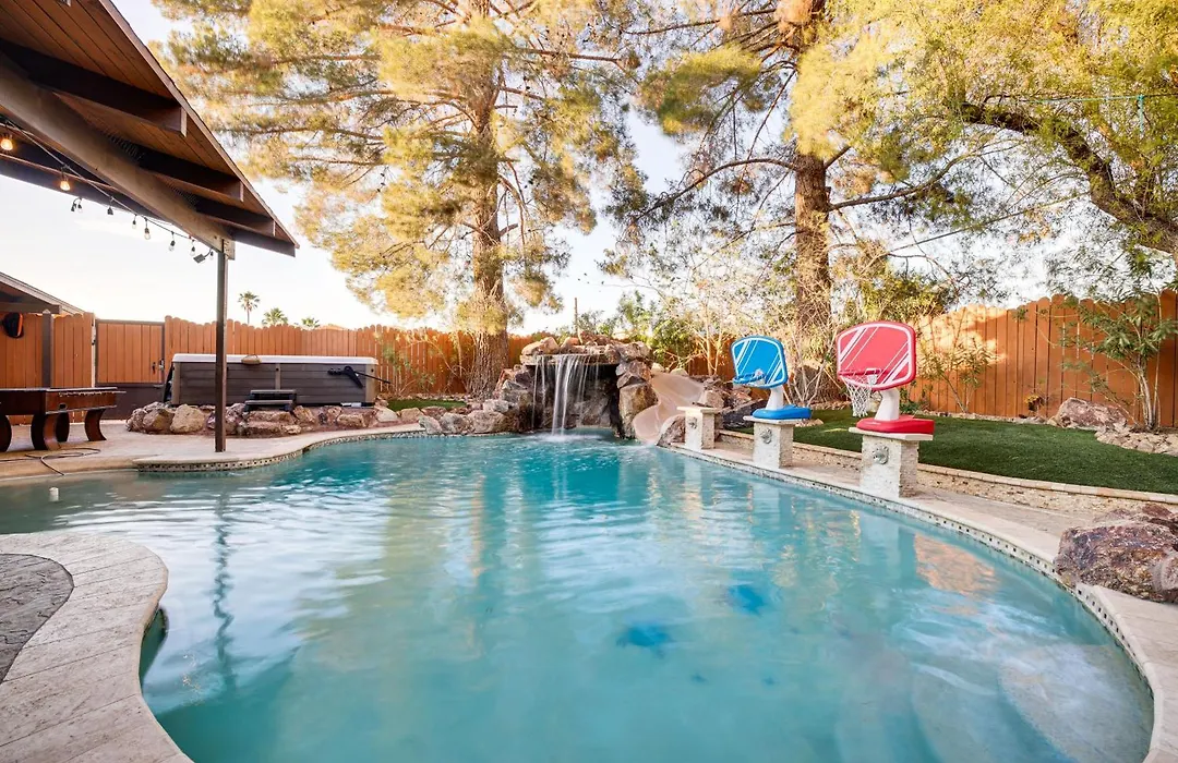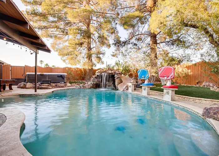 Featuring a private pool for guests' relaxation, 1-Acre Las Vegas Getaway Pool, Spa And Tennis Court villa is located within 7 km of The Mob History Museum. Boasting access to a patio, this Las Vegas holiday home invites guests to visit the Fremont Street Experience, located about a 15-minute ride away.